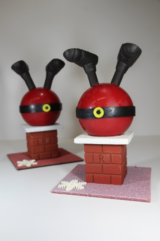 Montage au choix en chocolat noir ou lait.Largeur 12cm et de hauteur 19cm, environ 280gr de chocolat, présenté en boîte transparente.