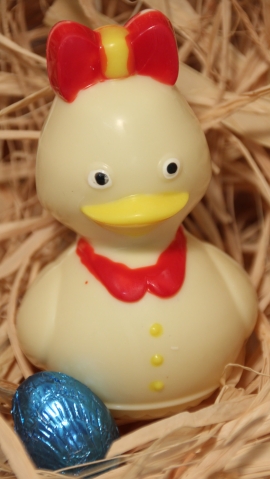 Moulages de divers sujets en chocolat noir, lait ou blanc garnis de friture classique, fourrée et oeufs fourrés.