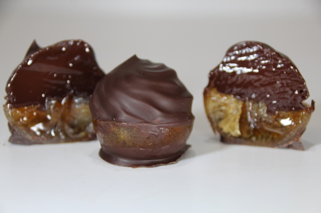 mandarine confite et ganache grand marnier enrobée de chocolat.