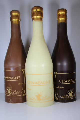 moulage en forme de bouteille de champagne taille réelle proposé en chocolat noir ou lait ou blanc